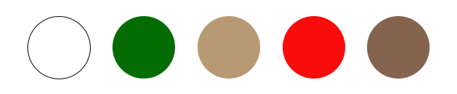Blanco, verde, beige, rojo y café.